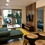 Gäste können einen Balkon und eine Sitzecke sowie einen Flachbildfernseher mit Satellitenkanälen genießen. Das Apartment ist auch mit einem Sofa ausgestattet. Die Unterkunft verfügt über 2 Schlafzimmer. Hier gibt es 1 Bad mit einer getrennten Toilette und einer Dusche. Des Weiterem gibt es einen Wäschetrockner und Handtücher im Badezimmer.